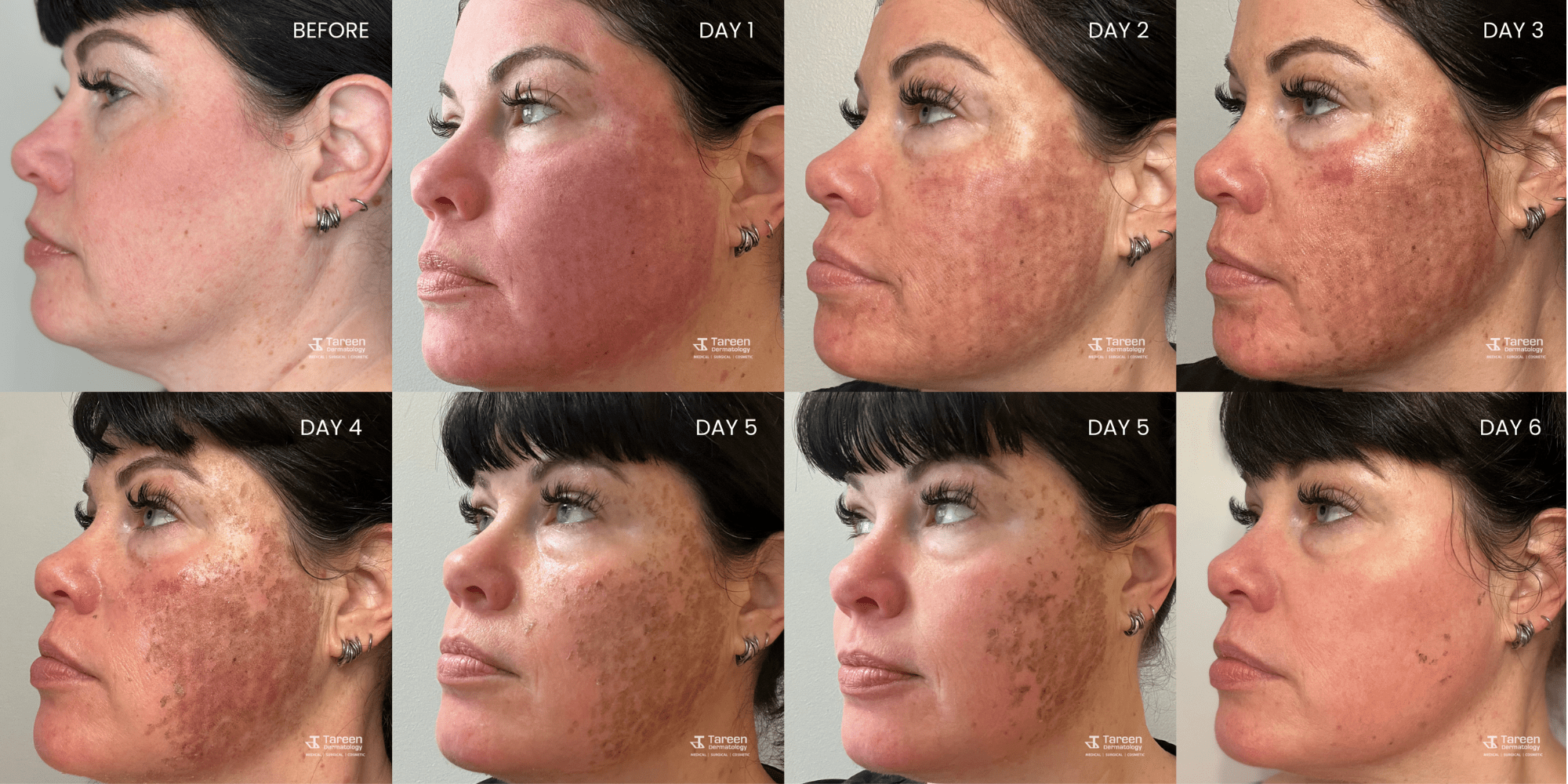 Fractional CO2 laser resurfacing treatments have been proven to be more effective for healing and just as effective. Our team will help you choose the right options based on your skin and unique skincare goals. The treatment typically takes 90 minutes, and you can see better skin with full results continuing for up to 90 days due to the fast cellular turnover after treatment. At Tareen Dermatology, we provide comprehensive consultations, procedures, and aftercare treatment recommendations so you feel confident during every step before, during, and after.